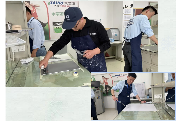 在培訓(xùn)中,全體學(xué)員積極與老師配合,在大寶培訓(xùn)學(xué)校老師的指導(dǎo)下取得了圓滿成功。通過專業(yè)的培訓(xùn),學(xué)員們對藝術(shù)壁材、工程涂料的工藝流程、產(chǎn)品特點都有了深入的了解,紛紛表示對大寶藝術(shù)壁材的前景充滿了信心。他們用一塊塊精美的樣板給培訓(xùn)交上完美的答卷。經(jīng)過考核,最后15名學(xué)員以優(yōu)異的成績順利結(jié)業(yè)。其中湖南永州劉俊、貴州黎師發(fā)和蘇州唐崇海榮獲優(yōu)秀學(xué)員獎。