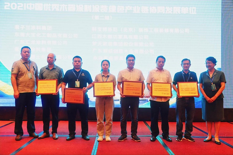 研討會(huì)現(xiàn)場,重點(diǎn)對(duì)“2021中國優(yōu)秀木器涂料涂裝綠色產(chǎn)業(yè)鏈協(xié)同發(fā)展單位”進(jìn)行了表彰與聯(lián)合授牌。大寶漆以優(yōu)秀的環(huán)保涂裝解決方案和創(chuàng)新的領(lǐng)先服務(wù)優(yōu)勢(shì),致力于推動(dòng)上下游產(chǎn)業(yè)鏈協(xié)同綠色發(fā)展,與江西木御坊家具有限公司保持深度合作,攜手推進(jìn)“協(xié)同發(fā)展、綠色制造”的成績獲得行業(yè)協(xié)會(huì)一致認(rèn)可,被分別授予該項(xiàng)榮譽(yù)獎(jiǎng)牌,也是對(duì)大寶漆賦能環(huán)保、積極推動(dòng)上下游產(chǎn)業(yè)鏈協(xié)同綠色發(fā)展的肯定。