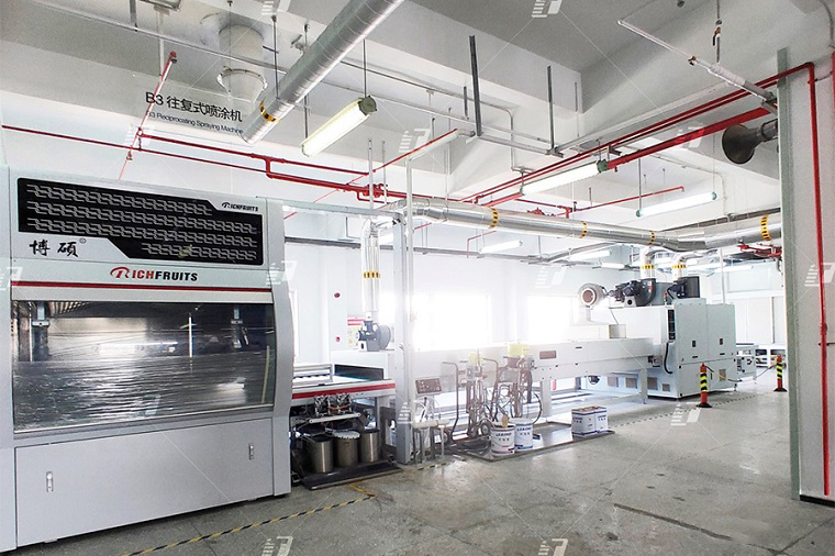 面對現(xiàn)階段家具廠油改水生產(chǎn)自動化轉型的困難及越來越嚴厲的國家環(huán)保政策,大寶漆想客戶之所想,急客戶之所急,巨資組建E3智能化生產(chǎn)測試及UV涂裝自動線,專為家具行業(yè)客戶提供環(huán)保節(jié)能減碳、增加自動化生產(chǎn)效率、節(jié)約轉型成本、提高產(chǎn)品良率等標準化工藝流程一站式涂裝解決方案,解決客戶的后顧之憂,達成涂裝水性化,環(huán)保綠色家居時代。