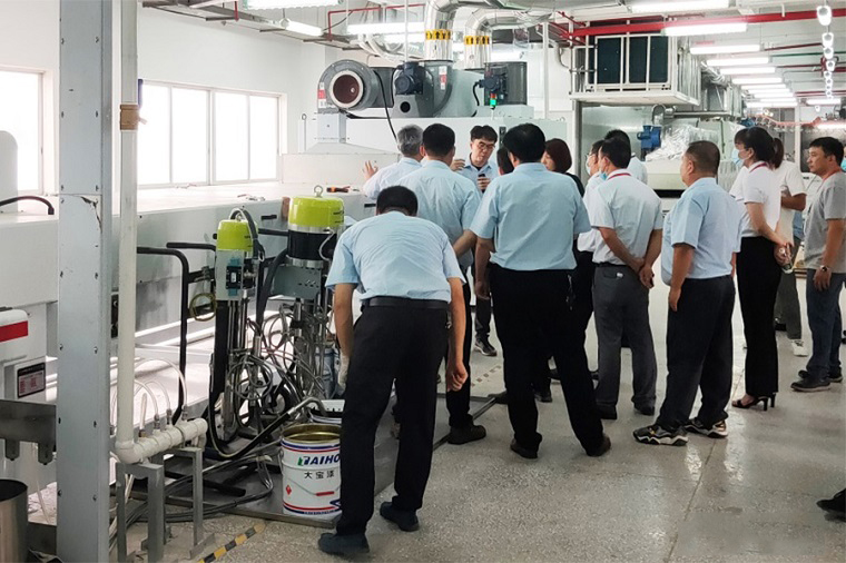 6月3日,迪歐家居集團楊青梅總經(jīng)理一行,蒞臨東莞大寶化工參觀指導E3智能化生產(chǎn)測試及UV涂裝自動線,交流學習攜手并進,并規(guī)劃新一代UV自動涂裝生產(chǎn)線,當日由直銷事業(yè)部張正賢總經(jīng)理、周志鴻副總經(jīng)理及相關領導出席陪同研討。