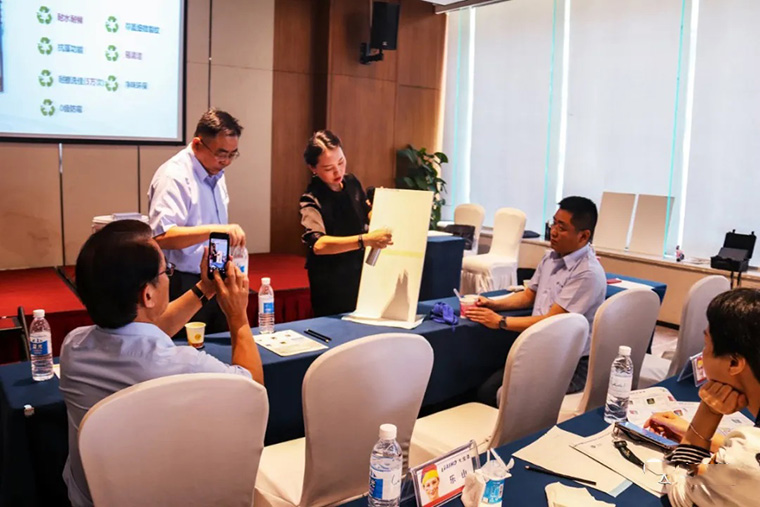 活動主題首先由業(yè)務三部黃文敏顧問詳細地從精裝房發(fā)展、80/90后逐漸成為市場新的消費群體、店面專業(yè)性、行業(yè)價格亂象、資金鏈管理…等方面分析裝修市場現(xiàn)狀,并就市場消費群體的結(jié)構(gòu)和升級服務的迫切兩大方面,洞悉裝修動機、獲取渠道信息、拓展經(jīng)營產(chǎn)品線等思路,為大家出謀劃策、指點迷津。