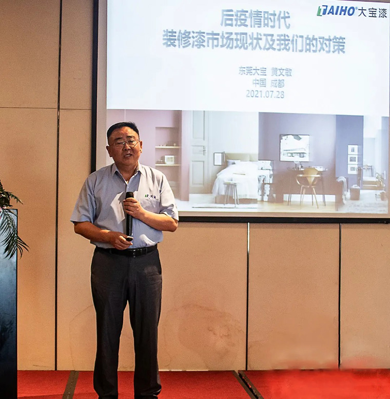 7月28日,“2021年大寶漆‘鋅技術 新產(chǎn)品 心服務’推廣季·成都站”在成都市新津區(qū)舉行。經(jīng)銷事業(yè)部副總經(jīng)理葉子琛在會議開場致辭中用『浴火重生』四字形容成都辦事處的艱辛,大寶漆成都辦事處于2020年3月成立,面對疫情未止、經(jīng)濟放緩、原材料大漲等迅猛的國際局勢,成都辦截止至今業(yè)績逆勢增長19.08%。葉副總表示:業(yè)績達成率為45.2%!感恩每位合作伙伴的支持和信任,更期望在這充滿不確定性的變局里,與大家并肩前行、共克時堅,攜手共創(chuàng)新征程、新未來!