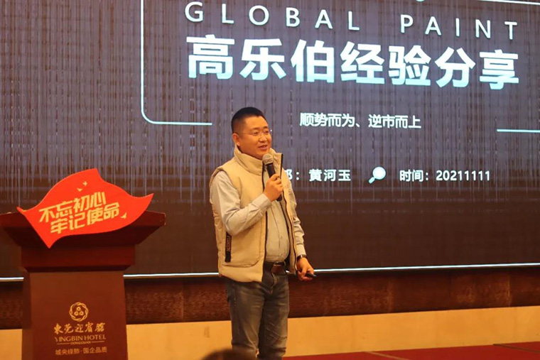 業(yè)三部執(zhí)行經(jīng)理張保中以“聚心而立,共力同行”為主題,全面詳細(xì)地闡述大寶裝?的秘密,色彩對人的影響及新色卡的問世,并首次向市場推廣4款大寶流行色。
