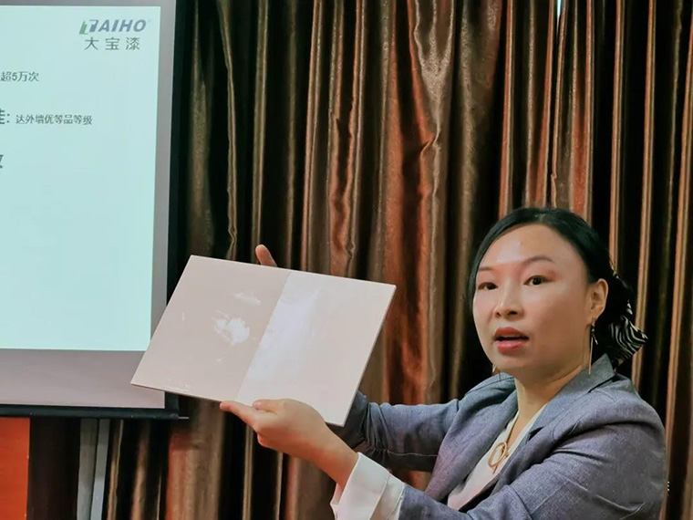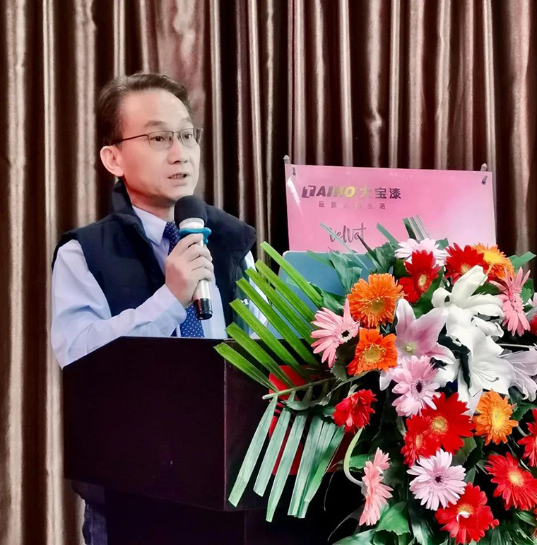 經(jīng)銷事業(yè)部葉子琛副總經(jīng)理在致辭中,分析當(dāng)下涂料行業(yè)所面臨的問(wèn)題和機(jī)遇,并對(duì)未來(lái)發(fā)展方向做出提示。葉副總說(shuō):從2019年上半年開(kāi)始,大寶成功推出第一代仿石漆產(chǎn)品,兩年多來(lái)通過(guò)卓越的產(chǎn)品技術(shù)研發(fā)和涂裝工藝創(chuàng)新能力,如今已更新到第三代,這次主推富含中國(guó)文化的24節(jié)氣仿石漆第三代色卡,定會(huì)為美麗鄉(xiāng)村自建房外墻裝飾市場(chǎng)賦能。