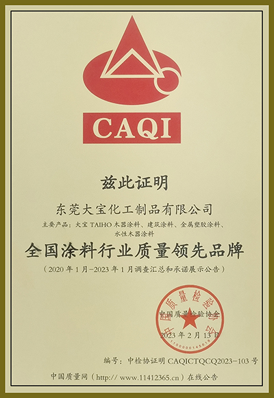 “提振消費信心”,為推動高質量發(fā)展提供動力。一年一度的“3·15” 消費者權益日來臨之際,大寶漆憑借過硬的產品和服務質量,再次榮獲中國質量檢驗協會頒發(fā)的“全國質量檢驗穩(wěn)定合格產品”、“全國涂料行業(yè)質量領先企業(yè)”、“全國涂料行業(yè)質量領先品牌”多項權威認證。