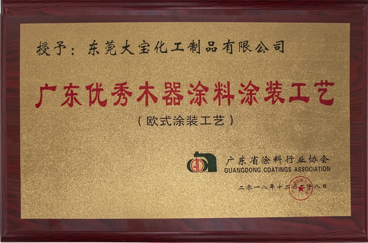 在2018廣東環(huán)保涂裝發(fā)展大會(huì)上,舉行了廣東省涂料行業(yè)協(xié)會(huì)“涂裝分會(huì)”成立儀式、2018廣東優(yōu)秀涂料涂裝項(xiàng)目表彰活動(dòng)。憑借在綠色涂裝領(lǐng)域的優(yōu)勢(shì)和良好口碑,大寶漆被授予廣東省涂料行業(yè)協(xié)會(huì)涂裝分會(huì)“副理事長(zhǎng)單位”。 在大會(huì)頒獎(jiǎng)環(huán)節(jié),大寶漆歐式涂裝工藝還獲得“廣東省優(yōu)秀木器涂料涂裝工藝”榮譽(yù)。