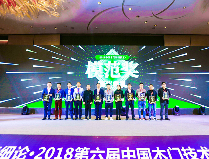 大寶漆榮獲木門精細(xì)技術(shù)模范獎(左一謝偉代表領(lǐng)獎)