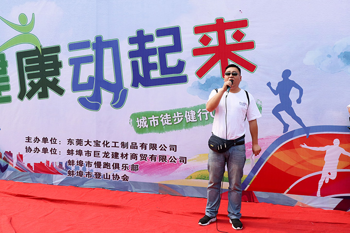 開幕式上,蚌埠慢跑俱樂部楊會長致開幕詞,他強調(diào)徒步和慢跑對于現(xiàn)代人們健康的重要性。大寶漆華東二區(qū)業(yè)務總監(jiān)謝重亮向參加徒步的健將們介紹了戶外運動要注意的事項。接著,蚌埠巨龍建材張俊良總經(jīng)理發(fā)言。他表示,大寶漆作為綠色環(huán)保涂料的制造商和涂裝解決方案的供應商,長期以來,秉持“堅持品質(zhì),永續(xù)環(huán)保”的理念,為廣大消費者提供綠色環(huán)保的涂料產(chǎn)品。此次大寶漆舉行蚌埠徒步健身活動,是希望為蚌埠市民帶來積極健康的生活方式,引導更多人參與運動,提高身體素質(zhì),與大家攜手共創(chuàng)健康的生活方式,共建綠色家園!最后他宣布2018年蚌埠大寶漆健康徒步行活動正式開始。