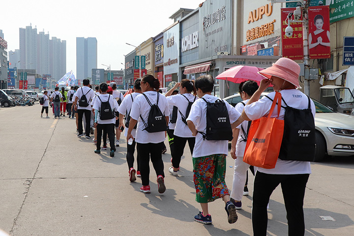 在工作人員的指引下,參賽隊伍高舉印有“大寶漆,品質(zhì)光彩生活”的旗幟徐徐前進,形成一道道亮麗的風景線。長長的隊伍從起點出發(fā),沿途,大寶漆工作人員為參賽者準備了飲用水補給,運動愛好者們一路走走拍拍,用腳步和汗水感受運動的樂趣。