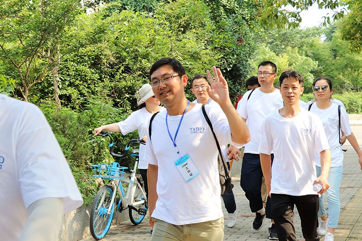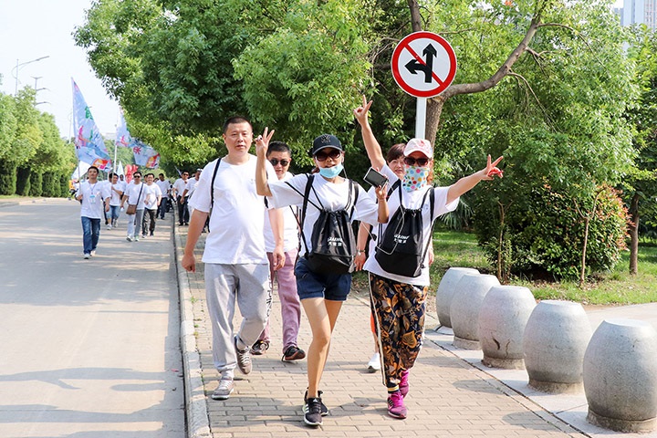 活動共吸引了300多名油工、設(shè)計師、慢跑俱樂部會員及眷屬報名參與,既為即將在蚌埠市舉行的安徽省第十四屆運動會預熱,同時也響應了全民健身的號召。此次徒步路程共5公里,不分年齡、不分職業(yè),大家只為健康運動而來,在健行中感受自然風光和運動帶來的快樂。