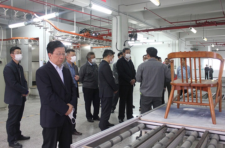 到訪(fǎng)領(lǐng)導(dǎo)參觀大寶化工智能涂裝線(xiàn)