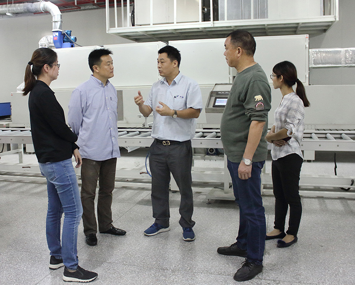 到訪領(lǐng)導(dǎo)一行還參觀了東莞大寶化工現(xiàn)代化的廠房設(shè)備、智能化涂裝線、一流的中央實(shí)驗(yàn)室和展示家具漆產(chǎn)品完美施工效果的色板中心等地,增進(jìn)了彼此的了解和進(jìn)一步合作的信心。針對(duì)“油改水”問題,工作人員向參訪人員介紹了大寶漆水性漆的工藝和質(zhì)量控制情況,詳細(xì)回答了馬總、李總一行對(duì)智能涂裝線的提問。考察人員對(duì)大寶漆先進(jìn)的生產(chǎn)管理和環(huán)保理念給予了高度評(píng)價(jià)。