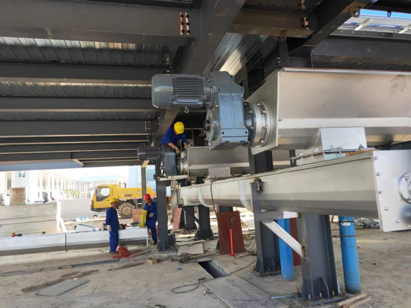 餐廚垃圾料倉式螺旋輸送機 此設備可根據用戶要求進行定制,服務熱線:13819259971 餐廚垃圾輸送機也叫餐廚垃圾無軸螺旋輸送機是一種利用電機帶動螺旋回轉,推移物料以實現輸送目的的機械。它能水平、傾斜或垂直輸送,具有結構簡單、橫截面積小、密封性好、操作方便、維修容易、便于封閉運輸等優點。 餐廚垃圾螺旋輸送機在輸送形式上分為有軸螺旋輸送機和無軸螺旋輸送機兩種,在外型上分為U型螺旋輸送機和管式螺旋輸送機。 有軸螺旋輸送機適用于無粘性的干粉物料和小顆粒物料。(例如:水泥、粉煤灰、石灰、糧等)而無軸螺旋輸送機適合輸送機由粘性的和易纏繞的物料。(例如:污泥、生物質、垃圾等) 餐廚垃圾輸送機可輸送傳統有軸螺旋輸送機和皮帶輸送機不能或不易輸送的物料,如顆粒狀和粉狀物料、濕地和糊狀物料、半流體和黏性物料、易纏繞和易堵塞物料、有特殊衛生要求的物料。 餐廚垃圾輸送機的工作原理是旋轉的螺旋葉片將物料推移而進行螺旋輸送機輸送,使物料不與螺旋輸送機葉片一起旋轉的力是物料自身重量和螺旋輸送機機殼對物料的摩擦阻力。螺旋輸送機旋轉軸上焊的螺旋葉片,葉片的面型根據輸送物料的不同有實體面型、帶式面型、葉片面型等型式。螺旋輸送機的螺旋軸在物料運動方向的終端有止推軸承以隨物料給螺旋的軸向反力,在機長較長時,應加中間吊掛軸承。