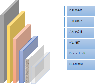真石漆是以高品質(zhì)純丙烯酸合成乳液為主要粘結(jié)劑, 以天然彩砂為骨料及選用各種優(yōu)質(zhì)助劑配制而成,具有耐水性、耐堿性好,粘接強(qiáng)度高,涂層堅(jiān)硬,耐候性優(yōu)等特性。晶瑩剔透的漆面突出強(qiáng)烈的藝術(shù)效果 ,是一種高級、自然、莊重、樸實(shí)具有天然風(fēng)格的豪華型裝飾涂料。